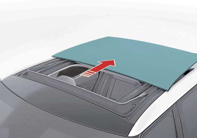 선루프 스위치를 뒤쪽으로 첫 번째 걸리는 위치까지 누르면 선루프 글라스가 열립니다. 단, 파워 선블라인드가 닫혀 있을 경우 파워 선블라인드가 먼저 열립니다. 스위치를 앞쪽으로 첫 번째 걸리는 위치까지 누르면 글라스가 닫힙니다. 단, 글라스가 닫혀 있을 경우 파워 선블라인드가 닫힙니다.