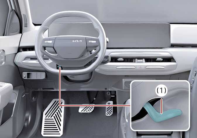 조절 레버(1)를 위로 올려 원위치한 다음 스티어링 휠이 확실하게 고정되었는지 확인하십시오.