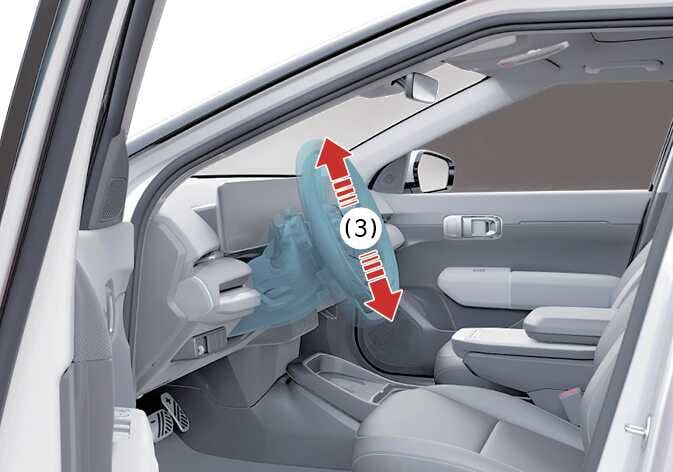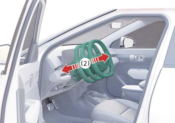 스티어링 휠의 앞뒤(2)와 높낮이(3) 위치를 조절하십시오.