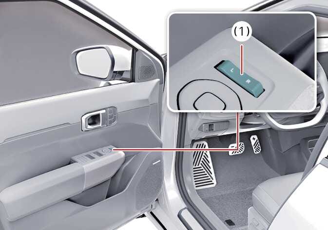 왼쪽 또는 오른쪽 실외 미러 조절을 위해 실외 미러 조절 선택 스위치(1)를 왼쪽 또는 오른쪽으로 선택하십시오.