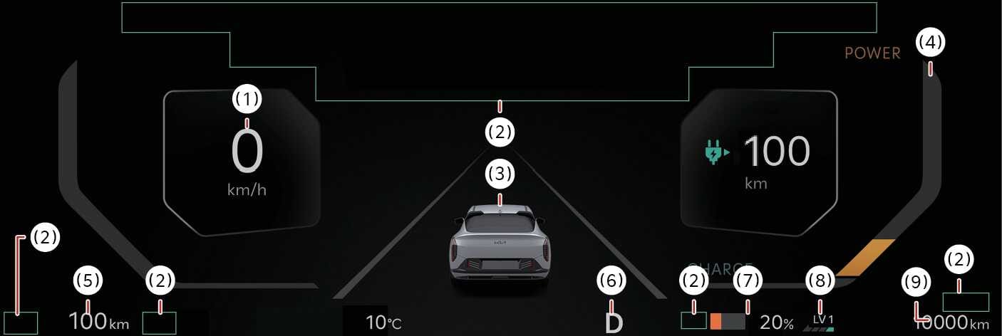 예시된 클러스터 형상과 LCD 표시창의 내용은 실제 차량의 형상 및 내용과 다를 수 있습니다.