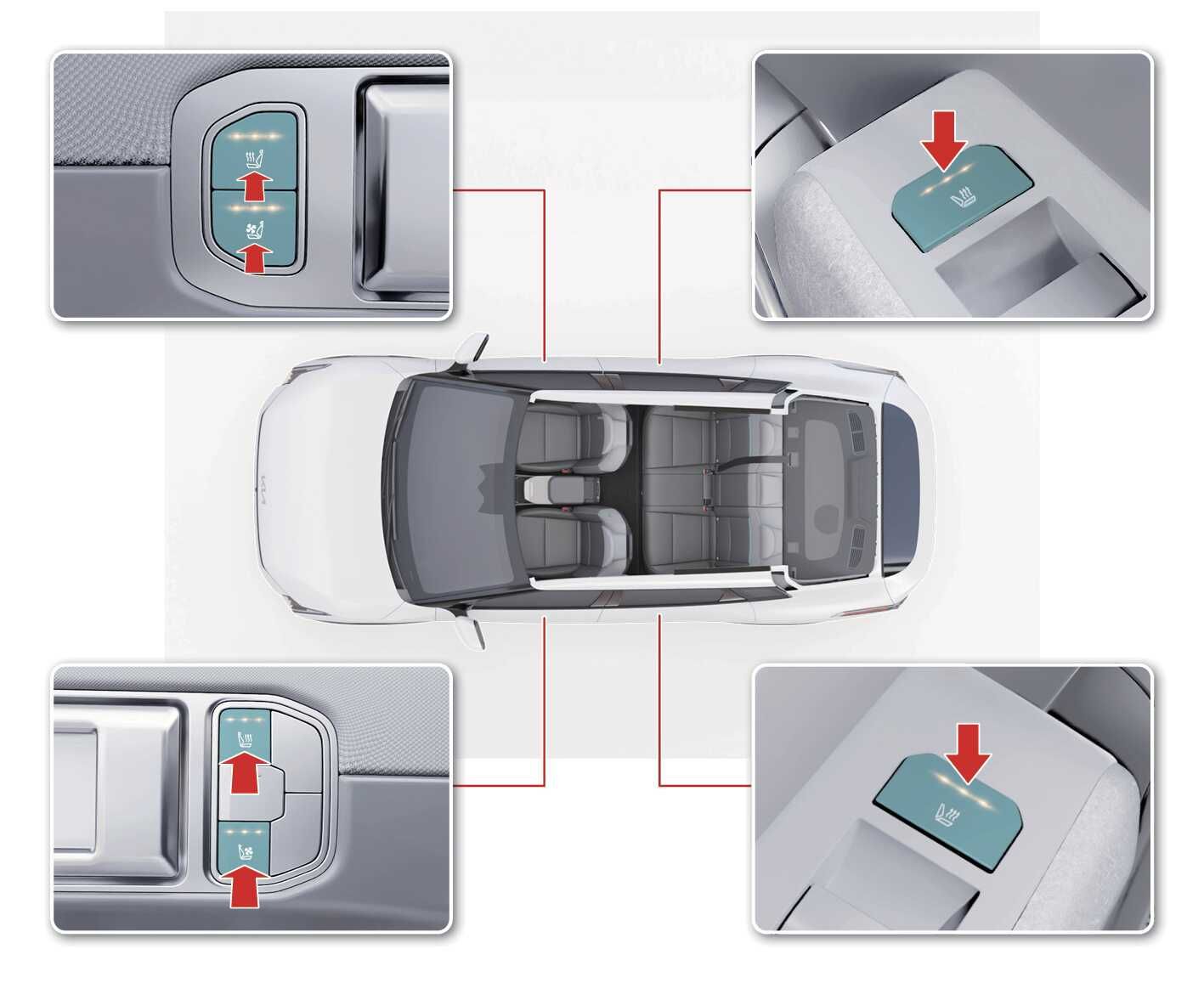 열선 및 통풍 시트 버튼을 누르면 열선 및 통풍 시트가 작동됩니다. 표시등이 켜져 사용 중임을 나타냅니다.