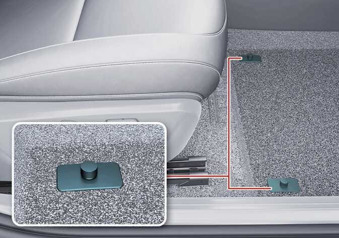 카 매트를 장착할 경우 바닥에 장착된 후크에 카 매트를 고정하십시오.