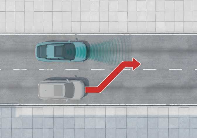 옆 차로의 차량이 같은 차로 앞으로 들어올 때 센서의 감지 범위 안으로 들어올 때까지 전방의 차량을 인식하지 못할 수 있습니다.