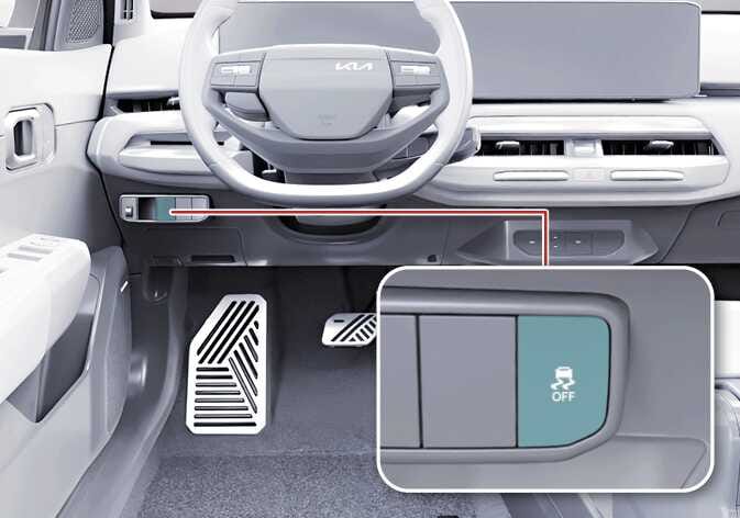 을 약 3초 이상 길게 누르면 부저음이 2회 울려 구동력 제어 기능과 브레이크 제어 기능이 모두 해제되며(OFF 2단계) ESC 작동 정지 표시등