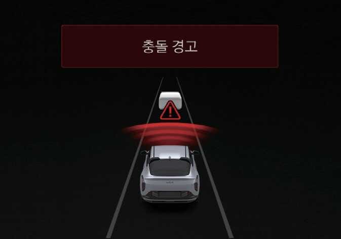 전방 충돌방지 보조의 기본 기능은 다음과 같이 경고하고 제어합니다.