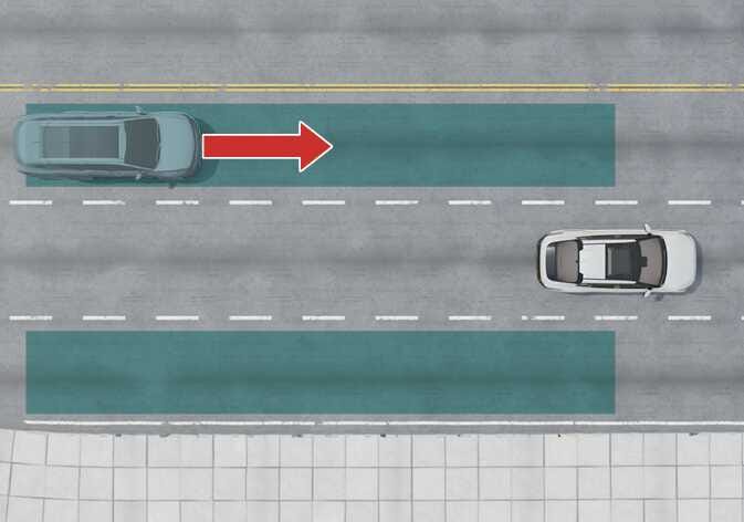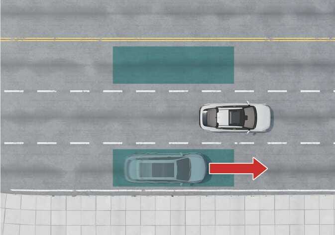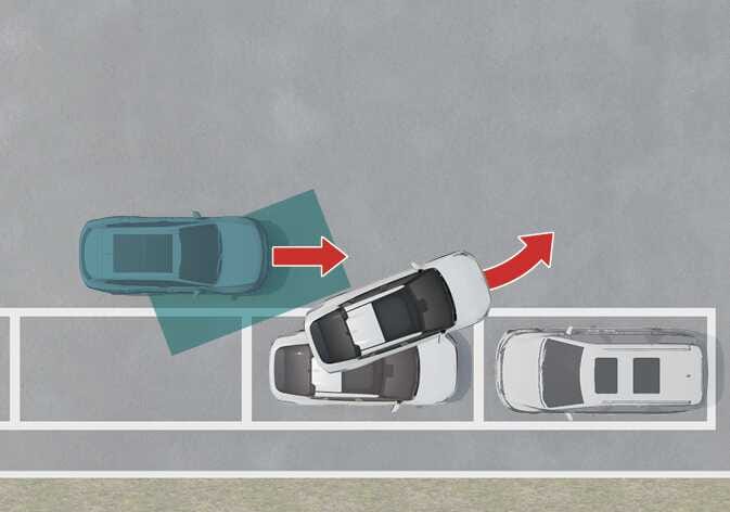 전진 출차 시 후측방에서 다가오는 차량과의 충돌 위험이 판단되면 충돌하지 않도록 제동을 도와줍니다. |