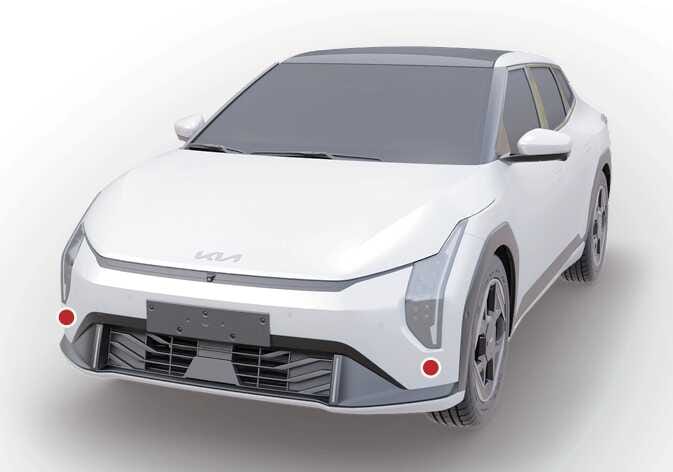 전방의 차량을 인식하기 위해 전방 카메라, 전방 레이더 및 전측방 레이더를 인식 센서로 사용합니다. 인식 센서의 위치는 그림을 참고하십시오.