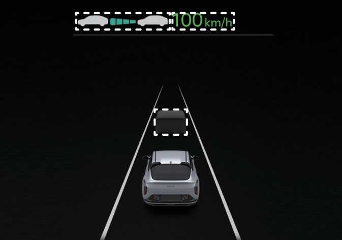 스마트 크루즈 컨트롤이 켜진 상태에서 가속 페달을 밟으면 설정속도를 변경하지 않고 일시적으로 가속할 수 있습니다. 가속하는 동안에는 클러스터의 설정속도, 차간거리 단계 및 목표 차간거리가 깜빡입니다. 단, 가속 페달 밟음 정도가 부족한 경우 차량이 감속될 수 있습니다. |