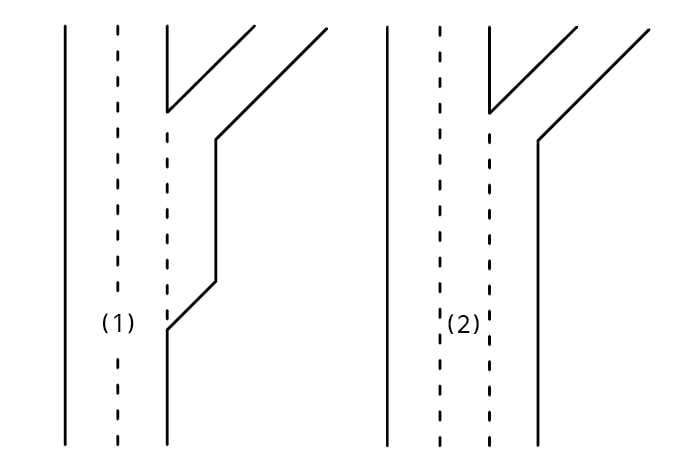 분기 형태의 진출입로가 주행 경로에 있는 경우, 분기 도로에 인접한 차로에서 주행하는 것으로 예측되면 진출입로 진입 전에 자동으로 감속합니다.