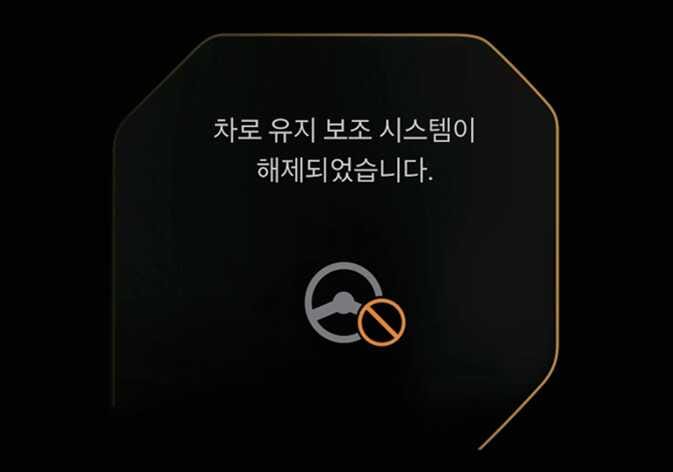 계속해서 스티어링 휠을 잡지 않을 경우, 차로 유지 보조가 자동으로 꺼집니다. |