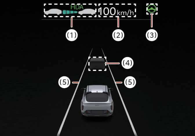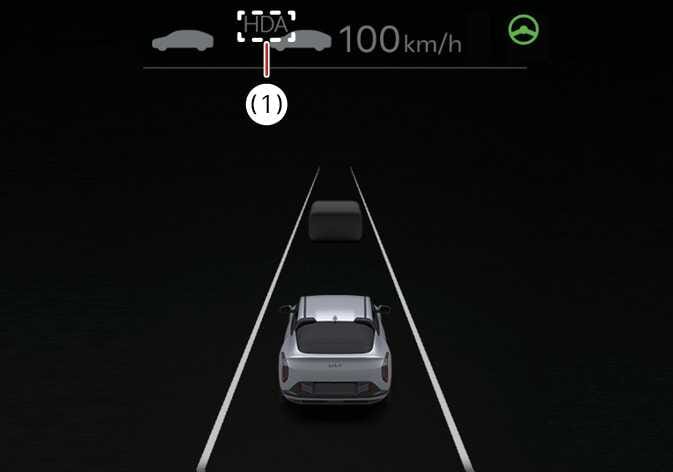 고속도로 주행 보조의 상태를 보기 위해서는 클러스터를 주행 보조 뷰로 설정하십시오. 클러스터를 주행 보조 뷰로 설정하는 방법은 LCD 표시창의 내용을 참고하십시오.