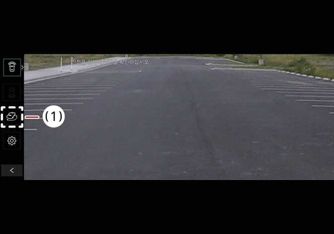 R(후진), P(주차), N(중립), 또는 D(주행) 단이고 속도가 10 km/h 이하인 상태에서 서라운드 뷰 모니터가 작동 중이면, 화면의 뷰 전환 버튼(2)의 3D 뷰를 선택하여 기능을 켤 수 있습니다.