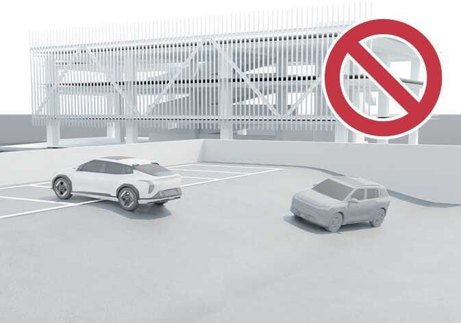 주변에 차량이나 구조물이 있으면 후측방에서 접근하는 차량을 인식하지 못해 후방 교차 충돌방지 보조가 경고하지 않거나 제동을 도와주지 않을 수 있습니다.