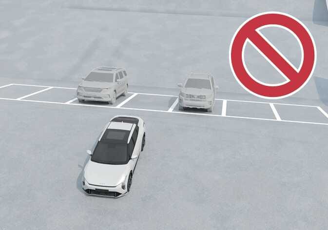 N_CT25E113한쪽에만 차량이 있는 주차공간에서 원격 스마트 주차 보조를 작동할 경우 주차된 차량을 피하기 위해 주차선을 넘어서 주차할 수 있습니다.