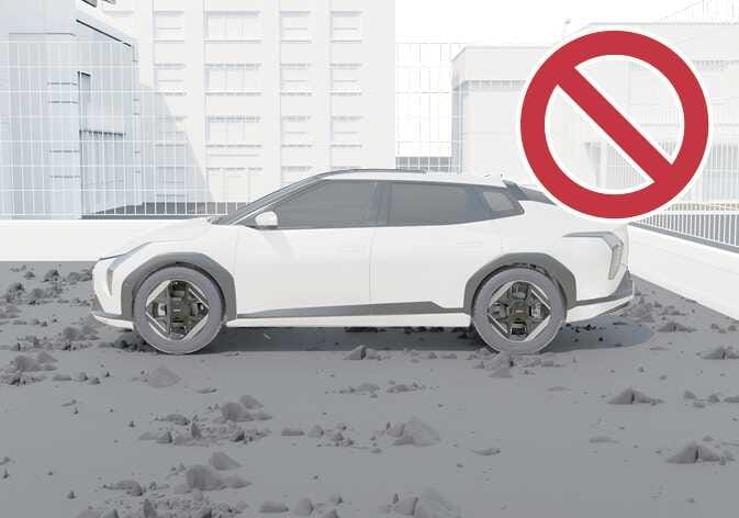 차량이 안전하게 움직일 수 있는 정도로 충분히 넓은 주차공간에서만 사용하십시오.