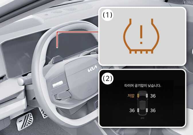 타이어 공기압 경보 시스템(TPMS)은 각 휠에 장착되어 있는 센서를 통해 일정 기준 이하로 공기압이 떨어진 타이어를 감지하여 운전자에게 알려주는 장치입니다.