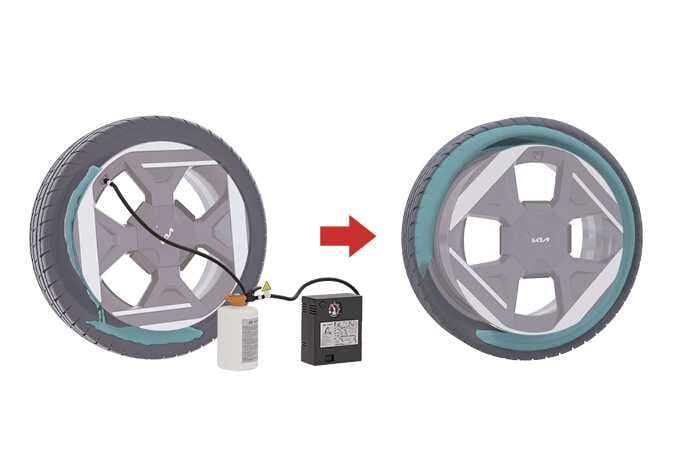 실런트(봉합제)를 타이어에 주입 후 차량을 주행하면 차량 주행 중 진동에 의해 타이어 내부에 실런트(봉합제)가 펑크 부위에 도포됩니다.