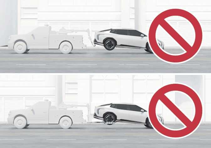 2륜 구동 차량은 구동되는 타이어를 구속한 상태에서 주차 브레이크를 해제한 후 반대편 타이어를 땅에 대고 견인할 수 있습니다.