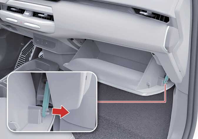 글로브박스를 열고 오른쪽 옆면의 지지대를 분리하십시오.