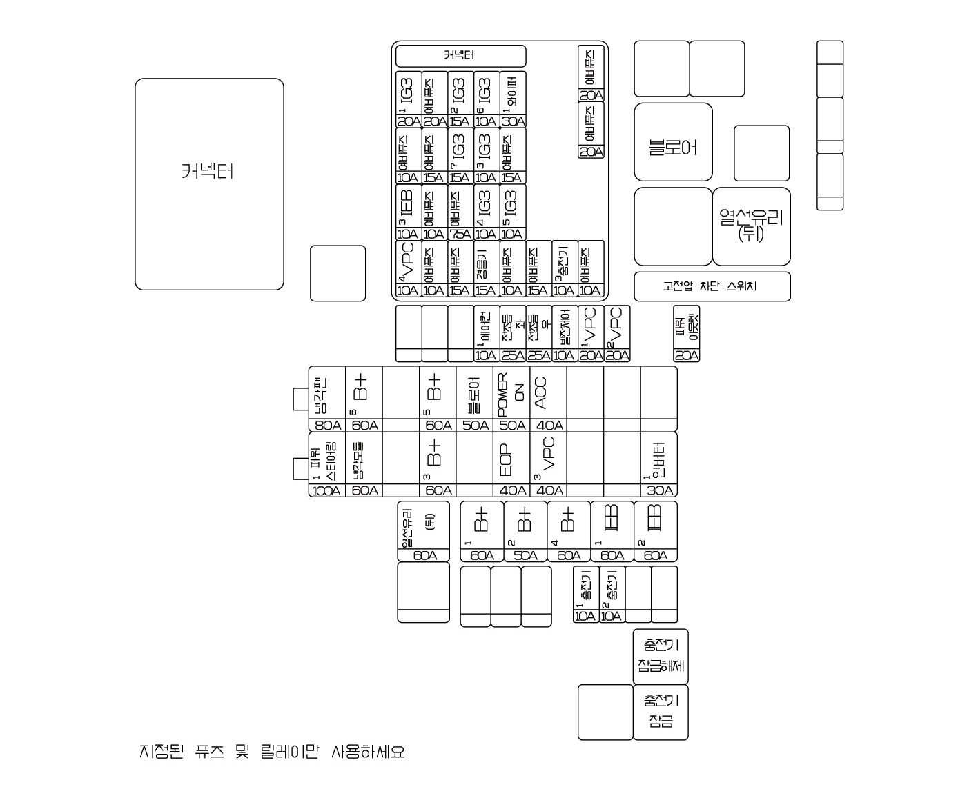 모터룸 퓨즈 박스 내 이름 없는 공란 퓨즈는 예비 퓨즈가 아니므로 임의로 빼지 마십시오. 임의로 뺄 경우 해당 시스템이 작동하지 않을 수 있습니다.