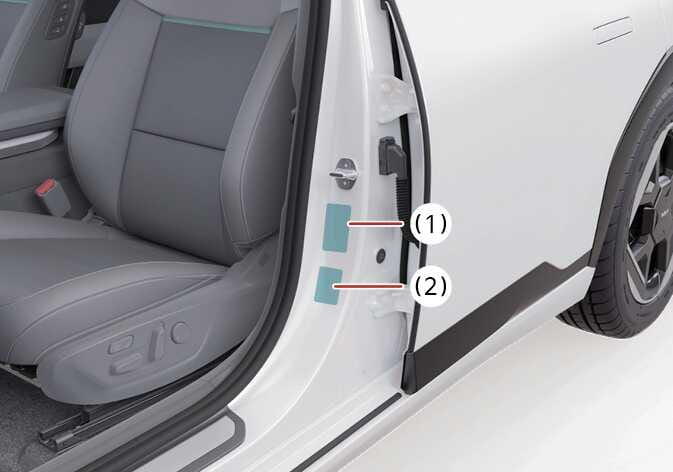 본 차량의 권장 타이어 공기압 정보는 운전석 옆 센터 필러에 부착된 라벨 안에 표기되어 있습니다.