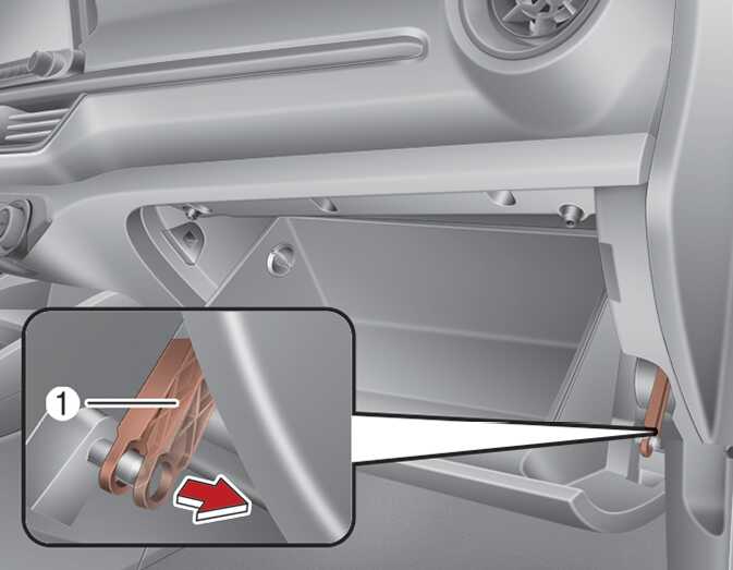 글로브박스를 열고, 오른쪽 옆면의 지지대(1)를 분리하십시오.