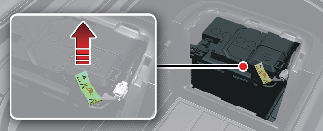 To access the service interlock connector, open the hood, detach the front trunk mat cover (