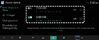 Set anticipated departure time for scheduled charging and target temperature.