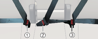The seat belt is released by pressing the release button (1) on the locking buckle.