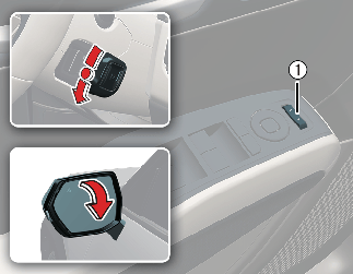 The position of the outside rear view mirror switch (1) determines whether the mirrors will move: