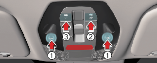 : The front and rear seat lamps turn on, and pressing again turns all lamps off.
