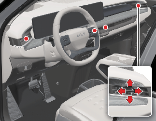 Adjust the direction of the front ventilation outlet using the vertical and horizontal direction adjustment lever.