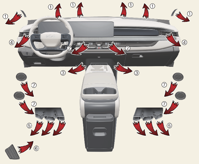 If you operate the air conditioner excessively in the summer, moisture may accumulate on the windows outside the vehicle due to the temperature difference between the inside and outside of the vehicle. In this case, change the air flow to this location(