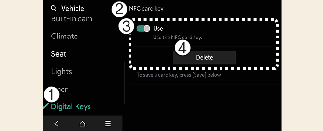 2. With the vehicle on, touch SetupVehicleDigital keyNFC card keyDelete on the infotainment system.