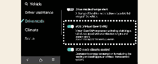 Select Settings → Vehicle → Drive Mode → VGS (Virtual Gear Shift) from the infotainment system screen.