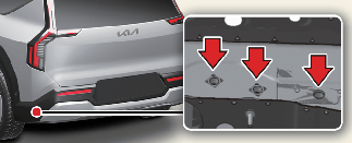 The mounting hole for hitches are located on both sides of the underbody behind the rear tires.