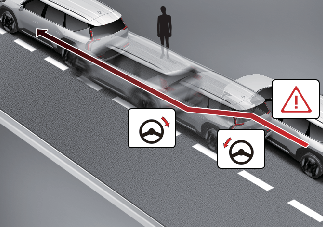 Evasive Steering Assist function will help avoid a collision with pedestrian or cyclist in front of the car in the same lane. When a risk of collision is detected, Evasive Steering Assist function will warn the driver and assist the driver's steering if they move the steering wheel.
