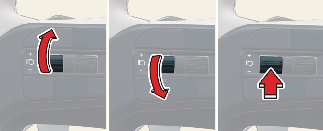 Push the (+) switch up or (-) switch down and hold it. The speed will increase or decrease to the nearest multiple of 5 (multiple of 10 in km/h) at first, and then increase or decrease by 6 mph (10 km/h).