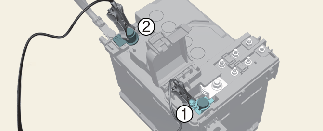 Connect the battery connector and cable to the 12V battery in the following order.