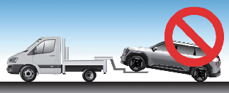 The AWD vehicle should never be towed with the wheels on the ground. Always use wheel dollies or flatbed. If not, the power electric system and the AWD system could be seriously damaged.