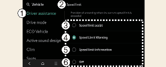 Warnung bei Geschwindigkeitsbegrenzung: Der Intelligente Geschwindigkeitsbegrenzungsassistent informiert den Fahrer über die geltende Geschwindigkeitsbegrenzung und weitere Verkehrsschilder. Zudem warnt der intelligente Geschwindigkeitsbegrenzungsassistent den Fahrer, wenn das Fahrzeug schneller als die Geschwindigkeitsbegrenzung gefahren wird.