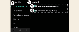 • Das Einstellungsmenü für die Warnung unaufmerksame Fahrweise wird nicht an Orten angezeigt, an denen die Warnung unaufmerksame Fahrweise immer aktiv ist.