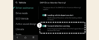 Home > Fahrerassistenzsystem > Fahreraufmerksamkeits-Warnsystem vorne (FAW) > Einstellungen des Fahreraufmerksamkeits-Warnsystems vorne