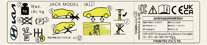 Home > Maßnahmen bei einem Notfall > Bei einer Reifenpanne (mit Ersatzrad) > Wagenheber-Aufkleber
