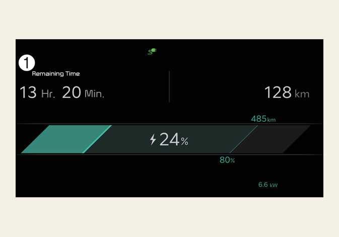 If you open the driver seat door whilst charging, the estimated charging time is also displayed on the instrument cluster for about 1 minute. When scheduled charging or scheduled air conditioner/heater is set, the estimated charging time is displayed as "--".