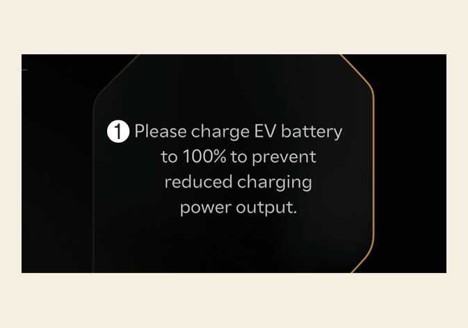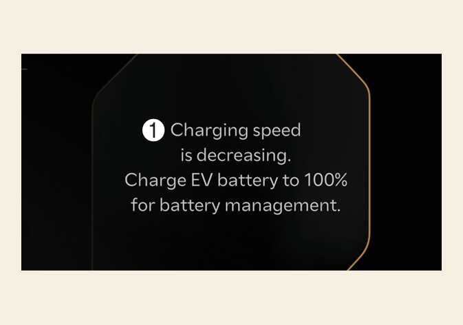 It is displayed when the vehicle has been used for an extended period without 100% charging. The charging target battery level is fixed at 100%, and the charging output may be reduced to maintain battery performance.