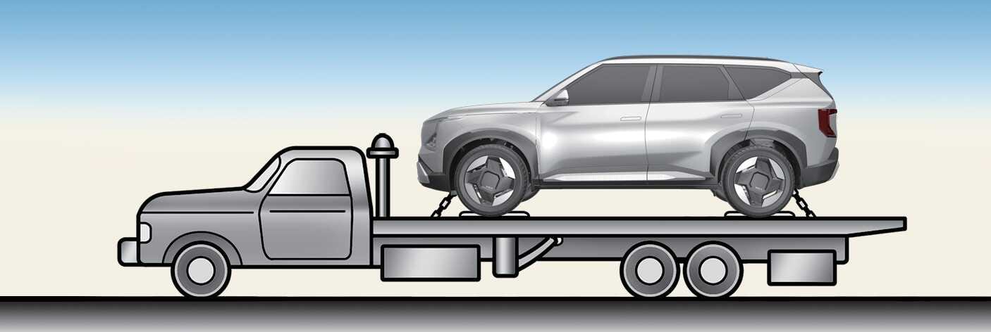 If towing is required, tow the vehicle with a flatbed equipment or dollies with all wheels off the ground.