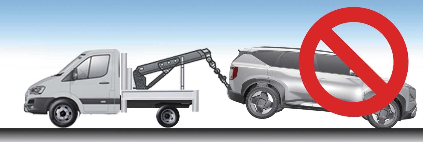 If you tow the vehicle whilst the driven wheels are touching the ground, the vehicle motor may generate electricity and the motor components may be damaged or a fire may occur.