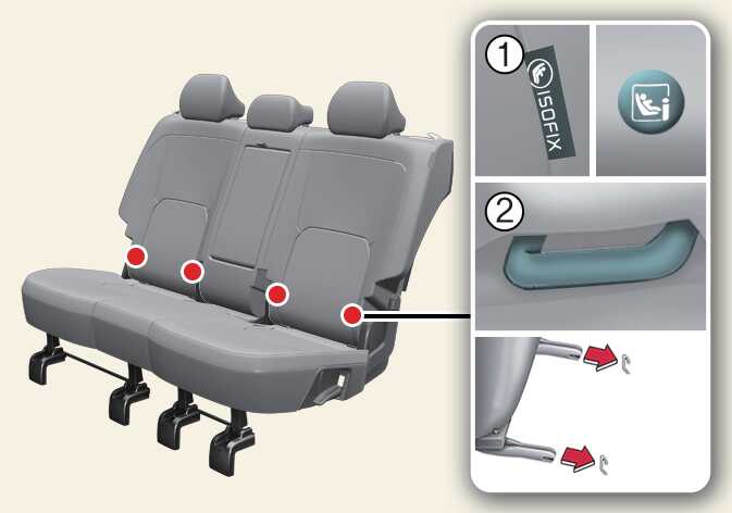 ISOFIX anchorages are metal bars built into the vehicle. There are two lower anchors for each ISOFIX seating position that will accommodate a Child Restraint System with lower attachments.